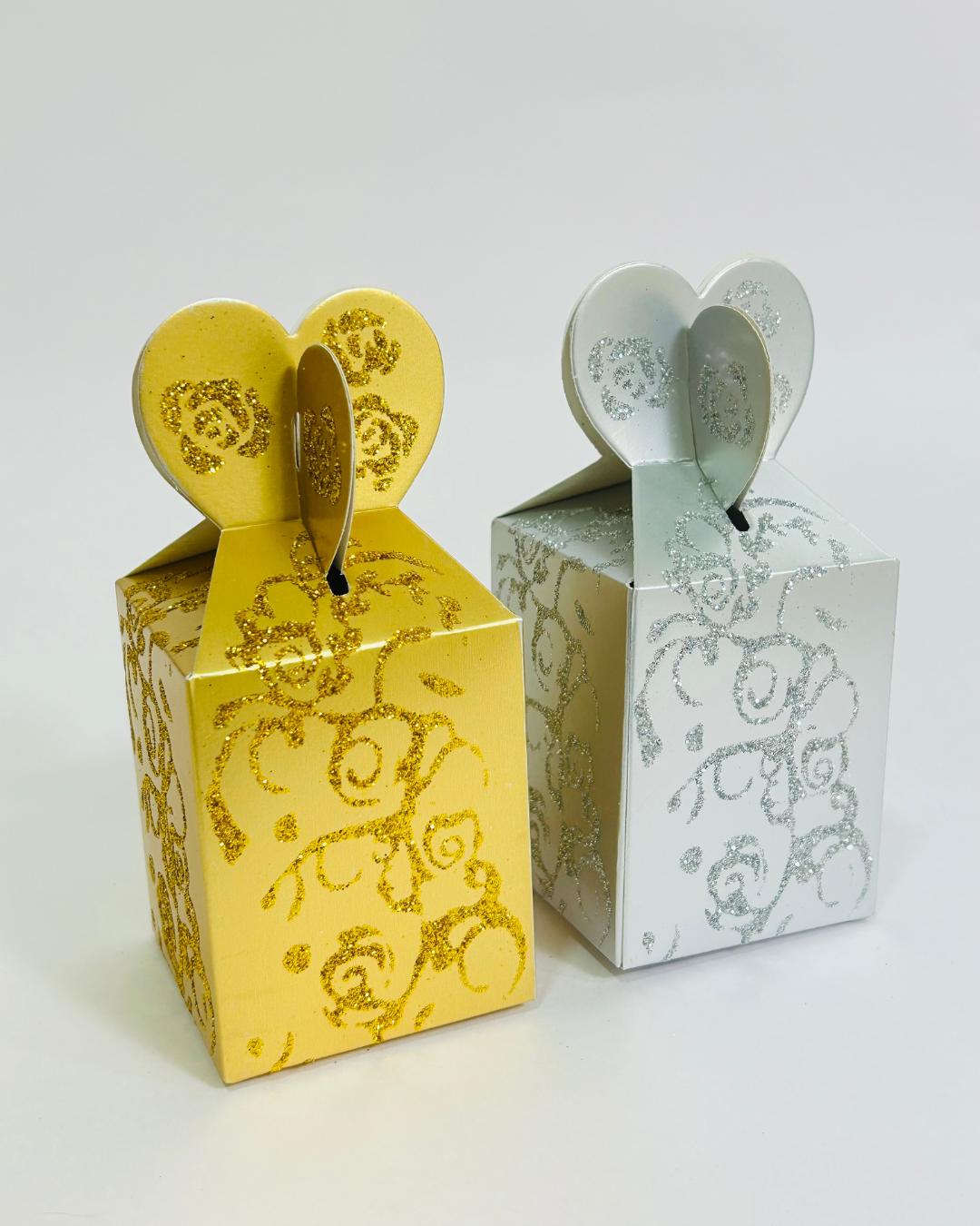 Designed in a stylish cube shape with a beautiful heart lock top closure and shimmering gold floral detailing, this box gives a festive and premium look while remaining budget-friendly. Its compact and elegant design makes it ideal for Nikah ceremonies, wedding table favors, engagement giveaways, mehendi gifts, Eid gifting, and special occasion packaging.