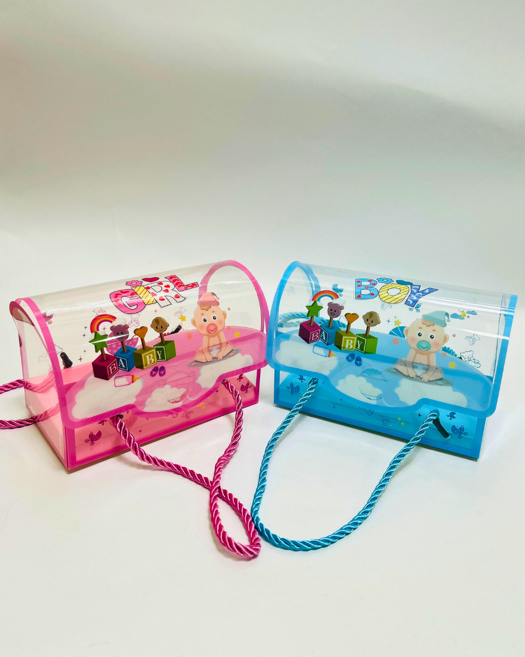 Baby Boy & Girl Transparent Return Gift Box with Handle